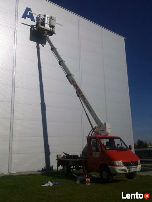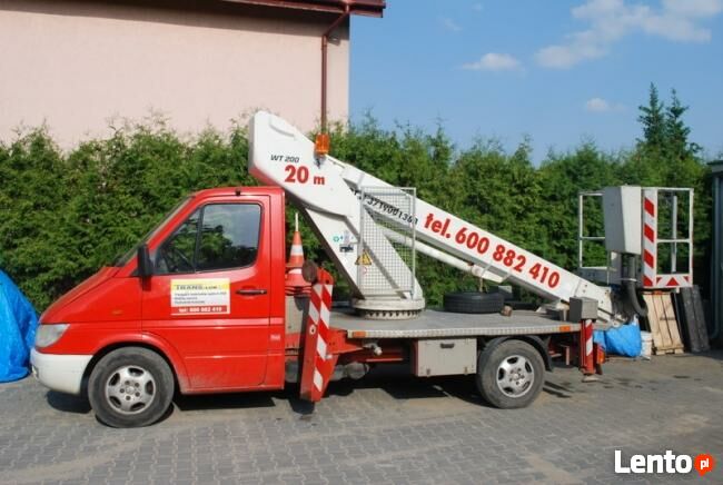 Podnośnik koszowy masa własną poniżej 3,5t , udźwig kosza 200kg , szerokość samochodu 2,20m wysokość samochodu 2.85 m , wysięg roboczy 18m!!!!!!!!Wykonujemy prace podnośnikiem koszowym :